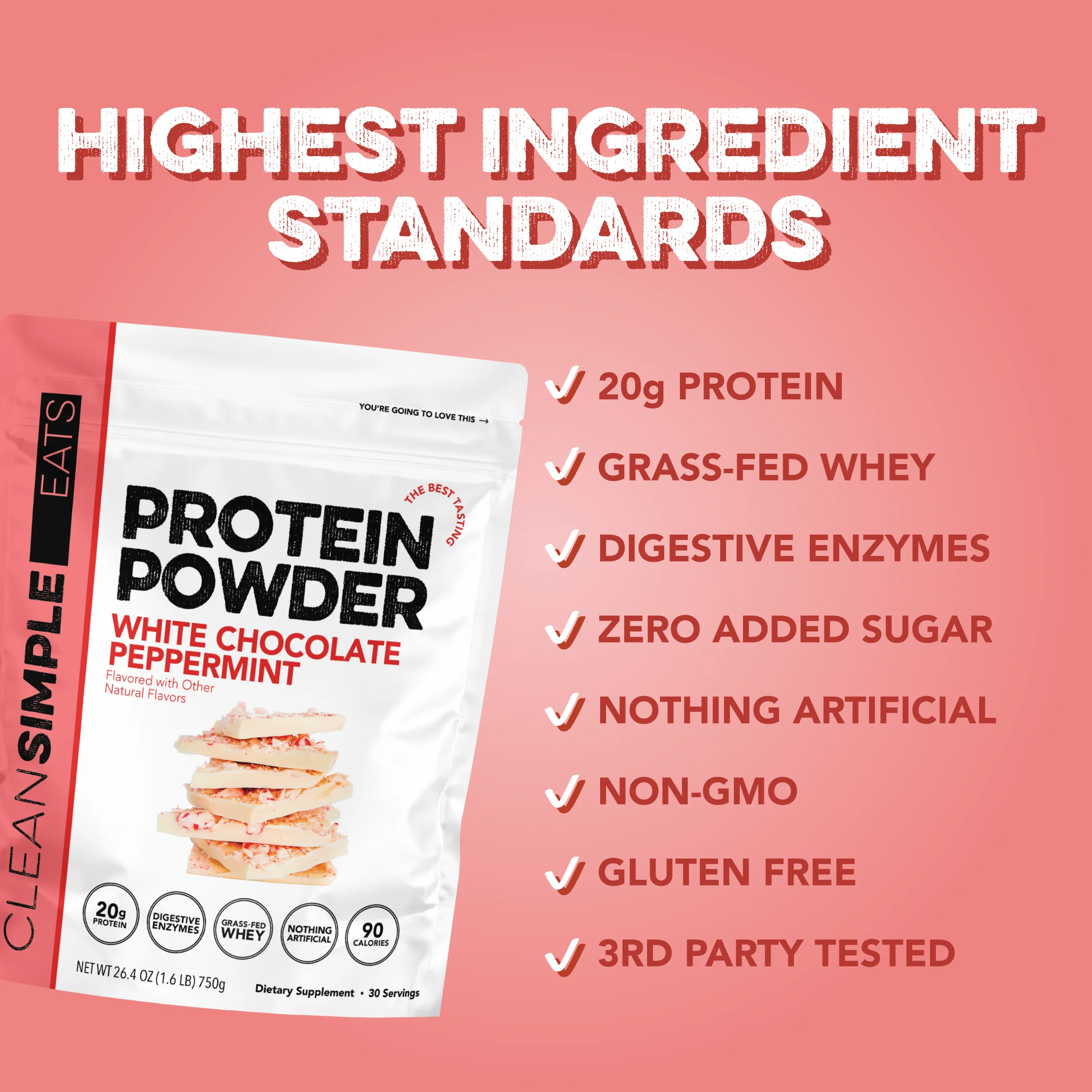 Protein Powder: White Chocolate Peppermint (30 Serving Bag)